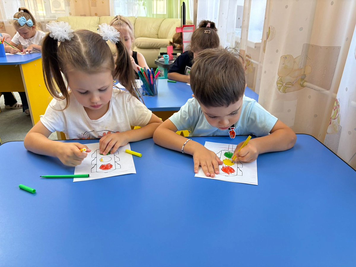 А вот самых юных воспитанников сада, младшую группу, автоинспектор познакомила с самым главным дорожным другом — светофором. Для малышей тоже нашлось задание: им предстояло разукрасить рисунок светофора, правильно расположив на нем цвета. И с этой задачей дети тоже справились «на ура».