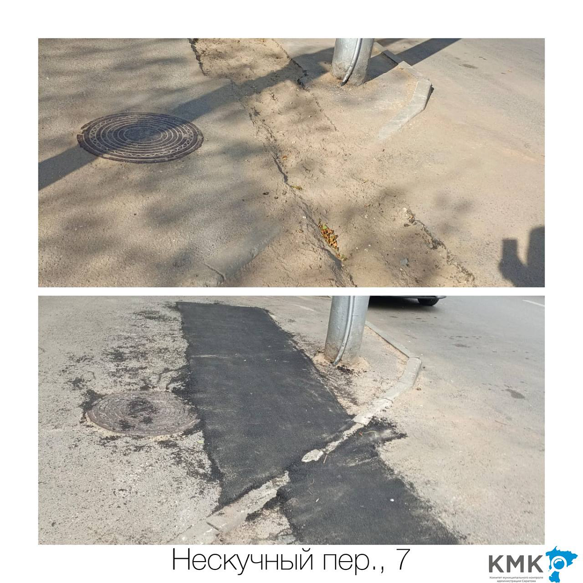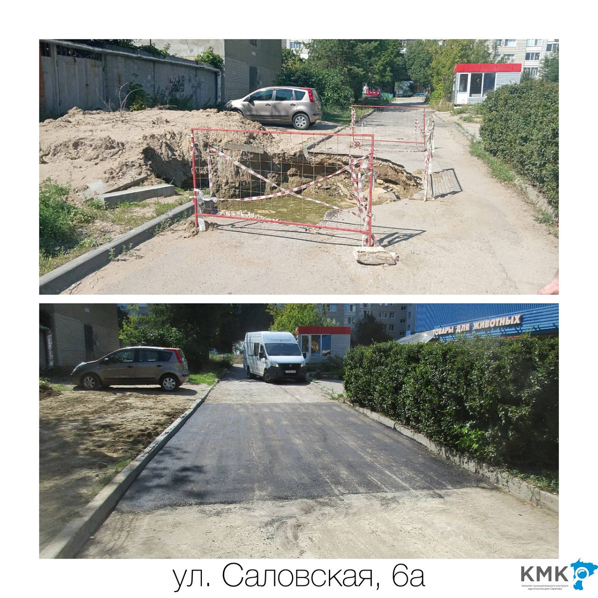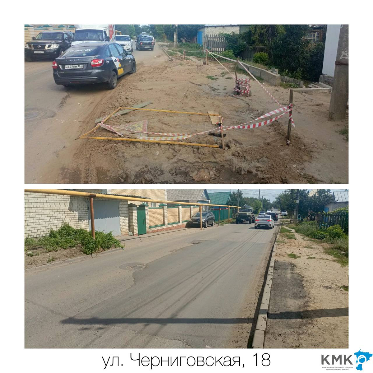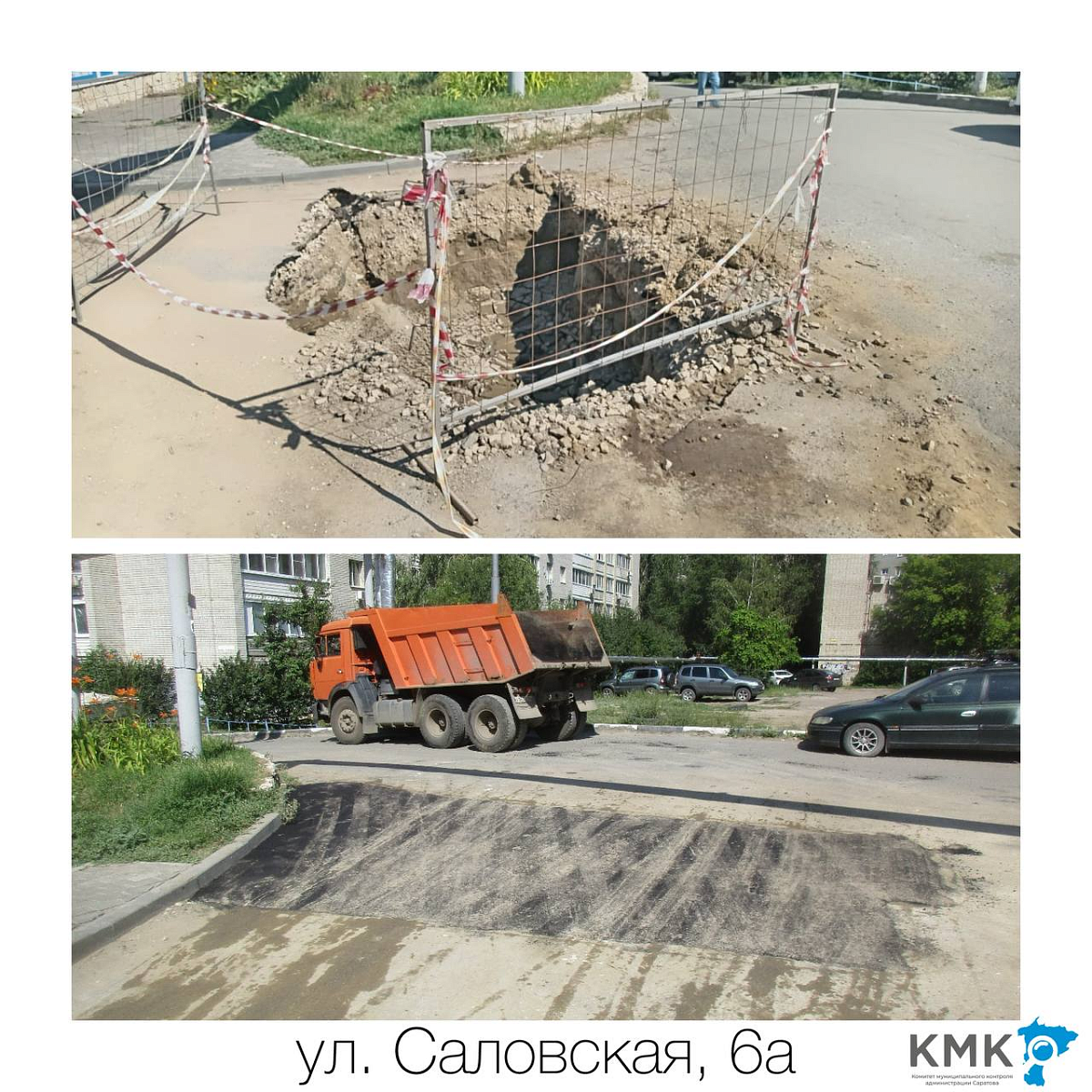 По результатам ранее принятых КМК администрации мер, асфальтобетонное покрытие на проблемных участках по ул. Гусельская, ул. Черниговская, ул. Заводская, ул. Саловская, ул. Пшеничная, ул. Чернышевского, Нескучному переулку, пересечению улиц Техническая и Мельничная, Чапаева и Василия Люкшина, а также по иным адресам восстановлено ПАО «Т Плюс», АО «СПГЭС», МУПП «Саратовводоканал» в установленные сроки.