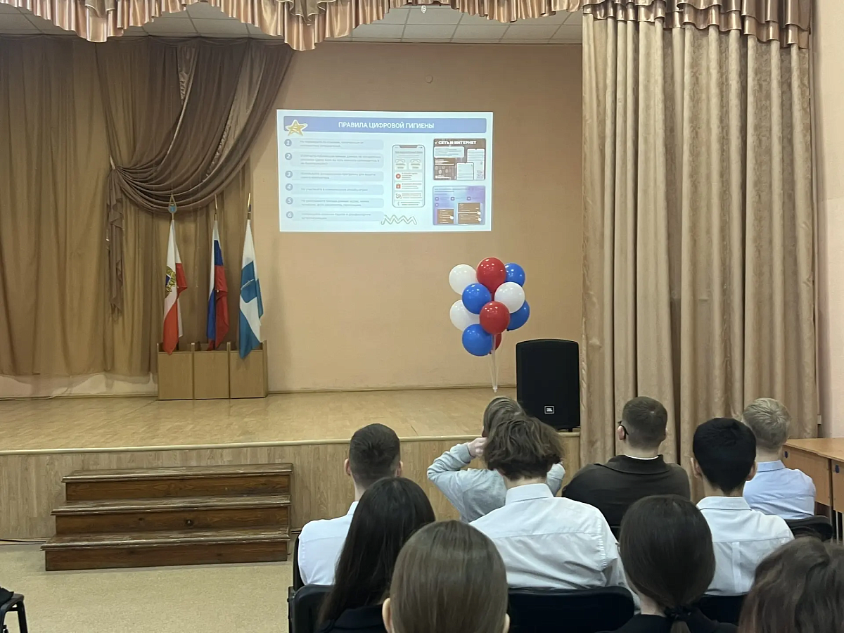 Традиционно утро понедельника в школах района началось с исполнения Государственного гимна и поднятия флага Российской Федерации. После торжественной части учащиеся посетили занятие «Разговоры о важном» на тему «Цифровой щит: основные правила безопасности в сети Интернет»