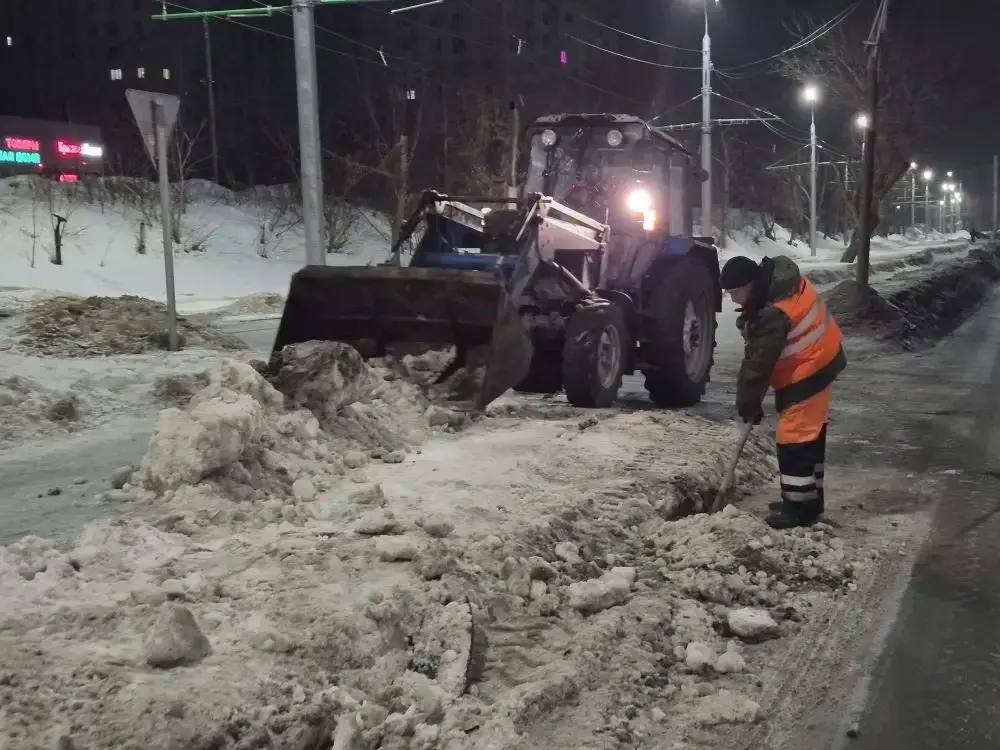 Продолжается расчистка и обработка противогололедными материалами автомагистралей, пешеходных зон и общественных территорий. Особое внимание уделяется подходам к остановочным павильонам и учреждениям соцсферы.