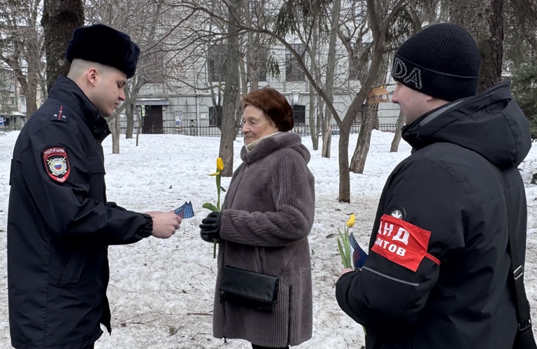 В преддверии Международного женского дня сотрудники полиции Управления МВД России по городу Саратову поздравили представительниц прекрасного пола с наступающим праздником и вручили им цветы. Старший участковый уполномоченный полиции старший лейтенант полиции Юсеф Ахмеров совместно с дружинниками пожелали женщинам здоровья и семейного благополучия. Данное мероприятие прошло на центральных улицах города в рамках Всероссийской акции МВД России «8 Марта – в каждый дом».
