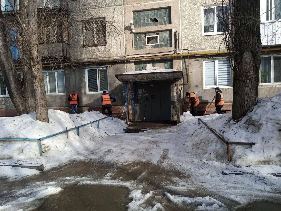 Сотрудниками администраций районов ведется контроль за уборкой дворов и очисткой кровель управляющими компаниями. В случае ненадлежащего исполнения организациями обязанностей по содержанию придомовых территорий применяются меры административного воздействия.