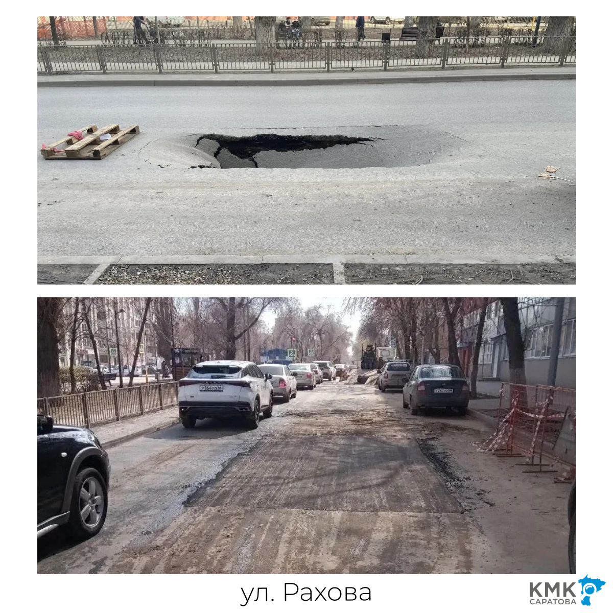 По результатам принятых КМК Саратова мер, асфальтобетонное покрытие на проблемных участках на ул. Радищева, ул. Рахова, ул. Курдюмская, ул. 2-я Прокатная, ул. Волгоградская, а также по иным адресам, восстановлено ПАО «Т Плюс», МУПП «Саратовводоканал» в установленные сроки.