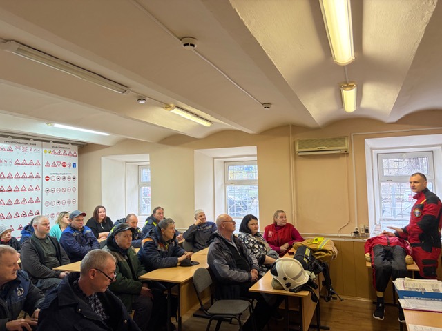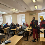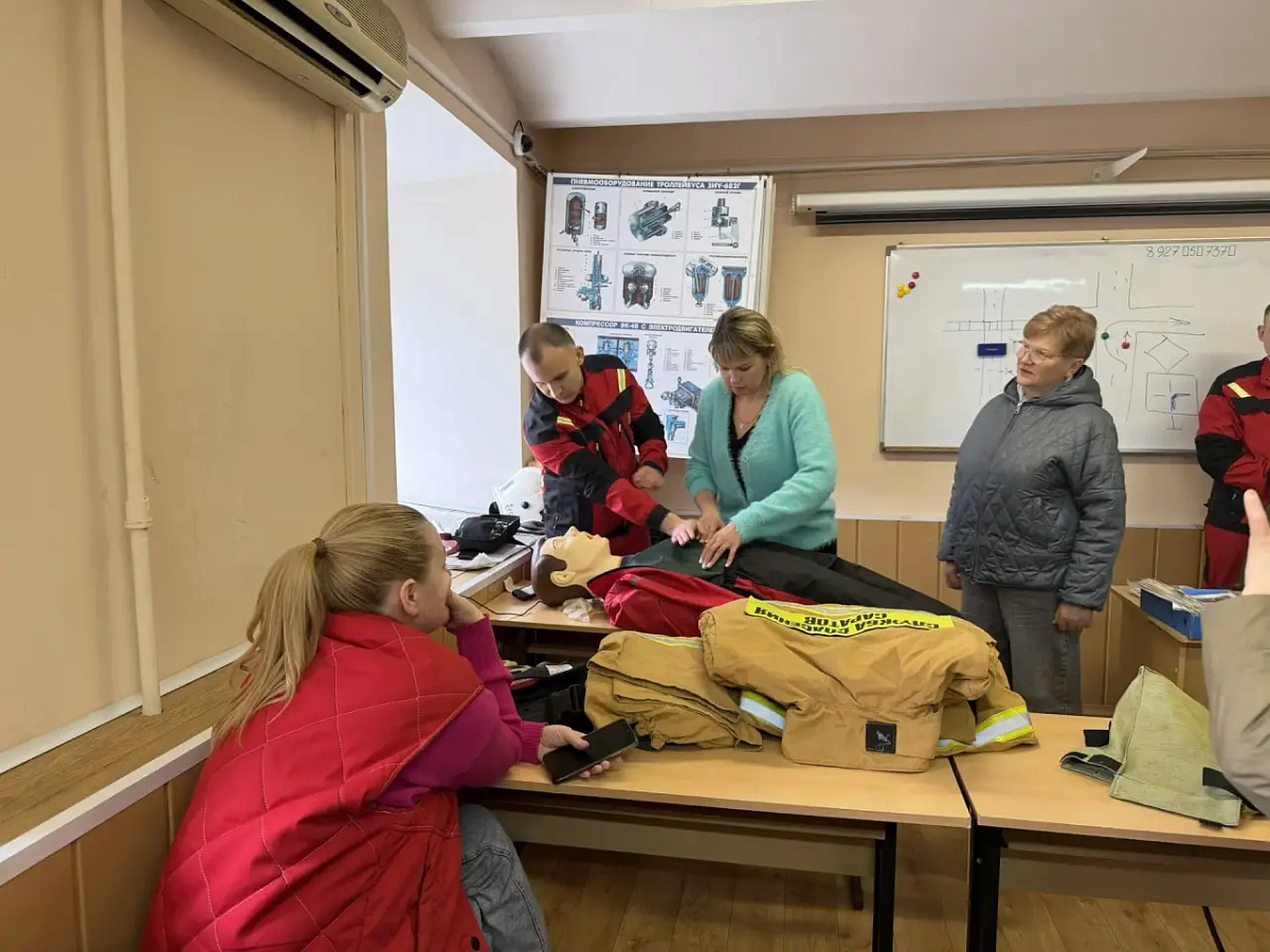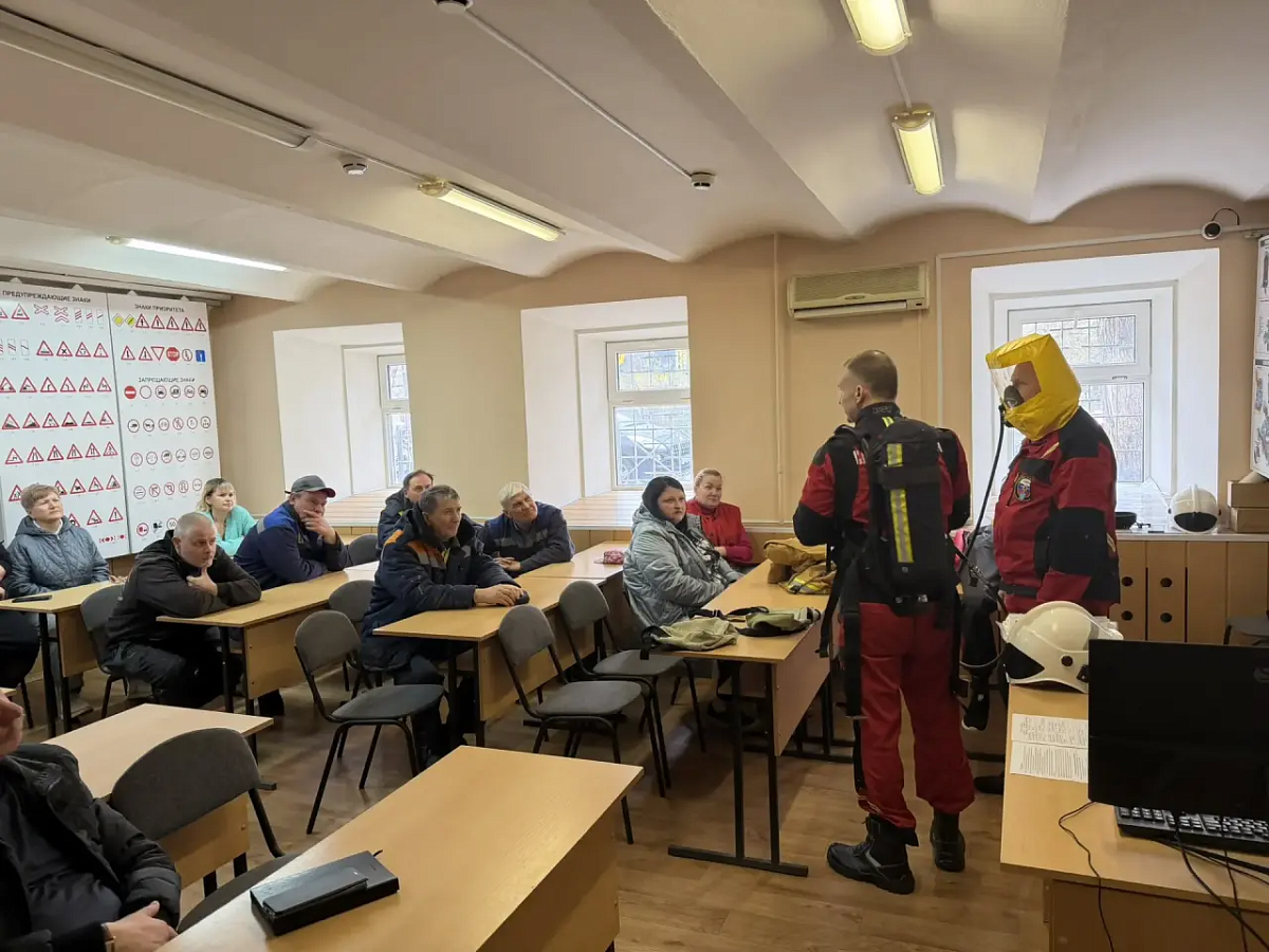 На тренинге спасатель напомнил о действиях персонала предприятия в чрезвычайных ситуациях, направленных на обеспечение безопасности людей, их эвакуацию и спасение.