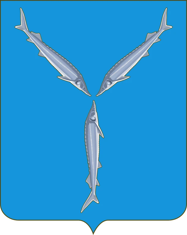 Геральдическое описание герба города Саратова гласит: «В лазоревом (синем, голубом) поле три серебряные стерляди головами к сердцу щита; нижняя стерлядь обращена спиной вправо» (геральдически правая сторона располагается слева от зрителя).