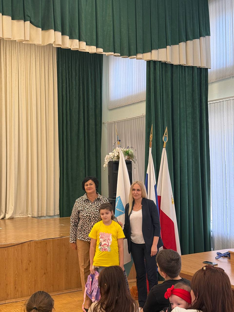 28 августа Лариса Максина, начальник управления по обеспечению деятельности комиссий по делам несовершеннолетних и защите их прав совместно с заместителем главы администрации Фрунзенского района по социальной сфере Татьяной Тынковой вручили школьные ранцы первоклассникам и поздравили с началом нового учебного года.
