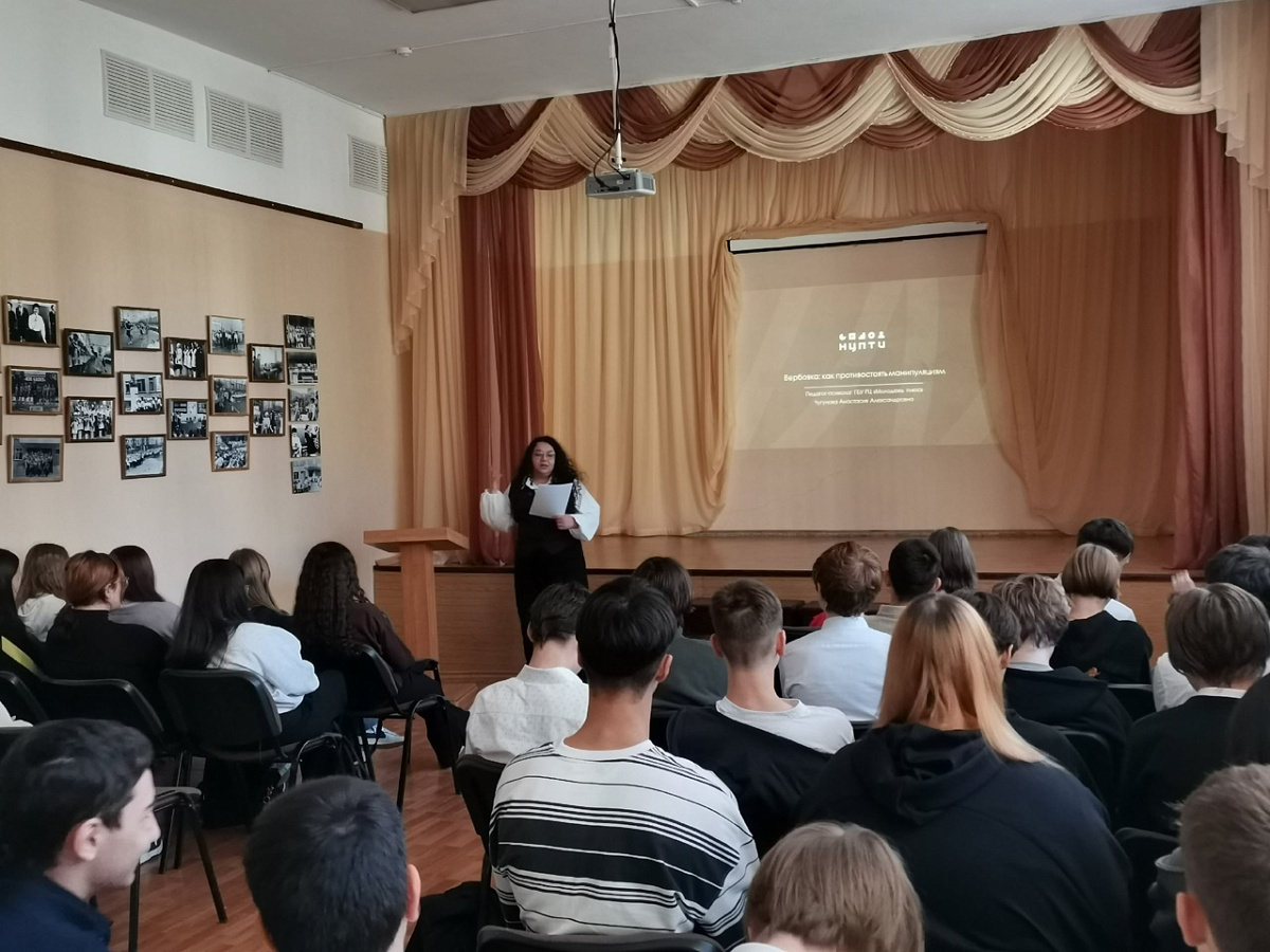 1 октября 2025 года на базе МОУ «Средняя общеобразовательная школа № 41» было организовано профилактическое мероприятие для учащихся 10 и 11 классов под названием «Мысли критично. Вербовка: как противостоять манипуляциям». Организатором мероприятия выступил городской комитет по образованию совместно с ГБУ «Региональный центр «Молодежь плюс».