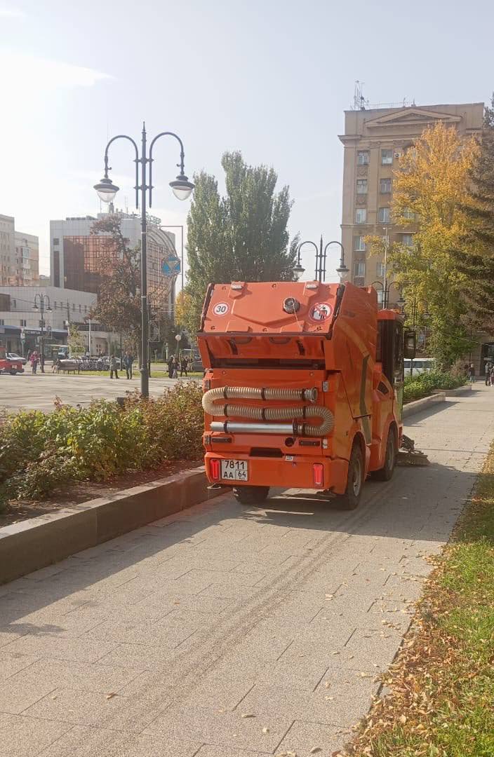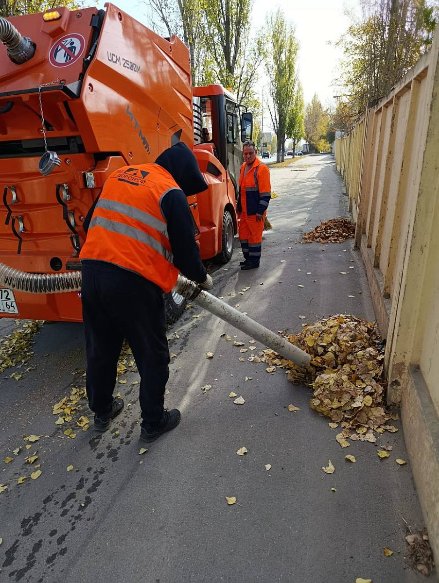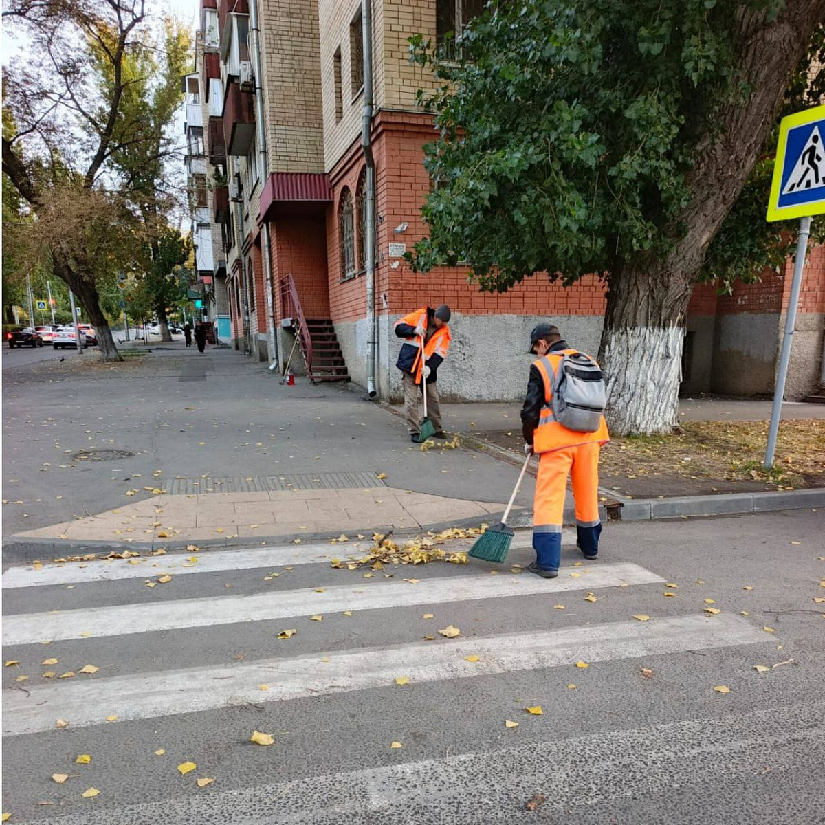 Коммунальные службы выполняют уборку дорожного полотна и пешеходных зон, мойку остановочных павильонов, подготовку цветников к зимнему периоду, обрезку кустарников и деревьев, сбор случайного мусора, опавшей листвы и другие работы