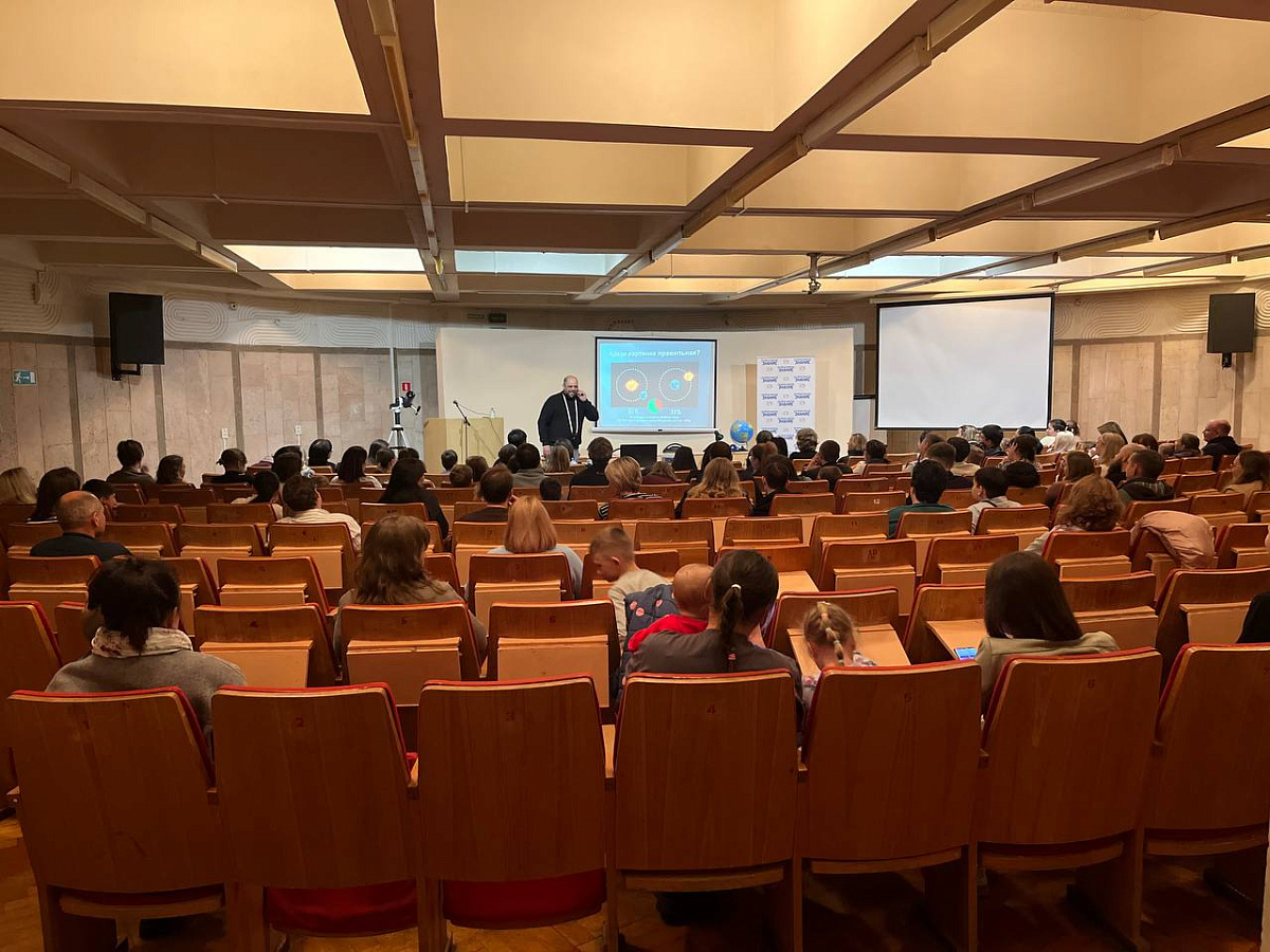 Заключительным мероприятием космической недели стала лекция «Солнечная система — наш звездный дом» лектора Общества «Знание», кандидата технических наук, автора проекта «Астрономия для всех» Юрия Кумакова. Астроном рассказал о космических объектах солнечной системы и ответил на вопросы слушателей.