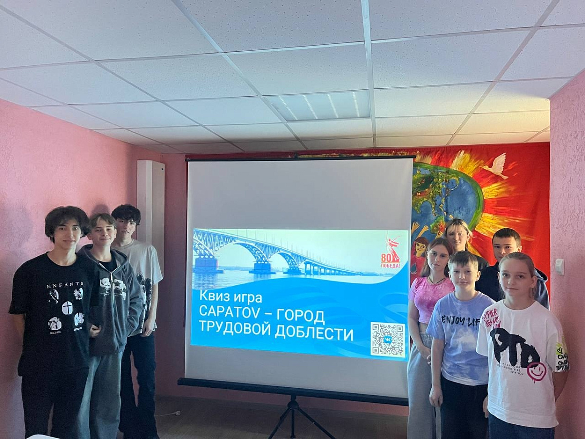 В подростковом клубе «Ровесник» состоялась тематическая квиз-игра «Саратов — город трудовой доблести». Мероприятие прошло в рамках тематической недели для участников объединений «Фрэндс» и «Республика детства».