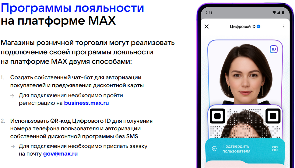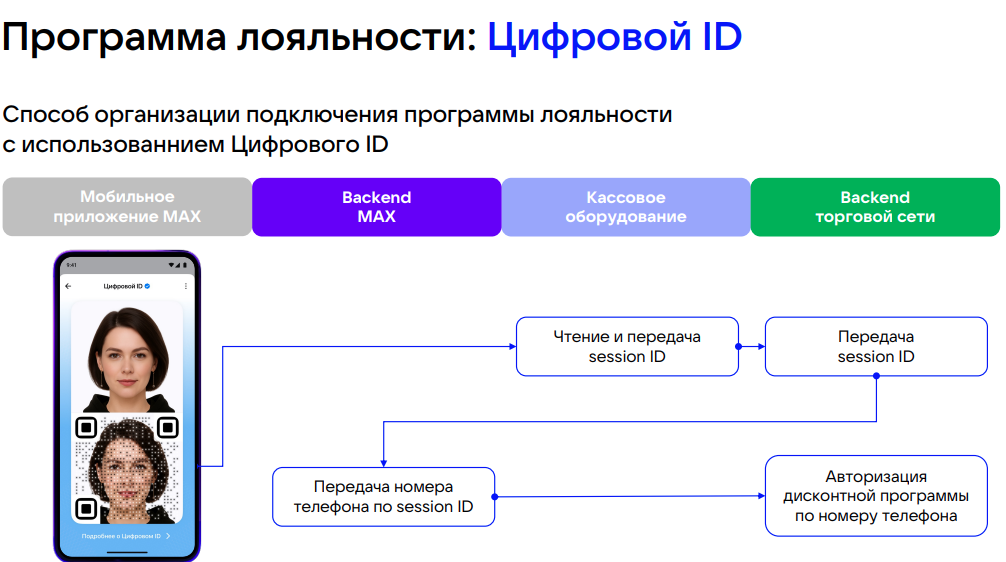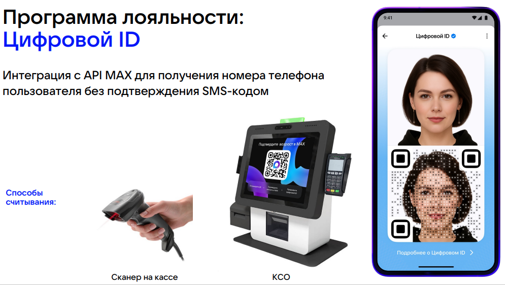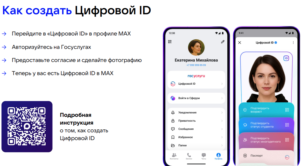Создание цифрового ID по существующей биометрии и по загранпаспорту нового образца позволяет пользователю предъявлять QR-коды паспорта и подтверждения возраста.