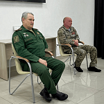 Во встрече приняли участие заместитель главы администрации Октябрьского района по патриотической работе Юрий Кафидов и координатор фонда Сергей Филинов.