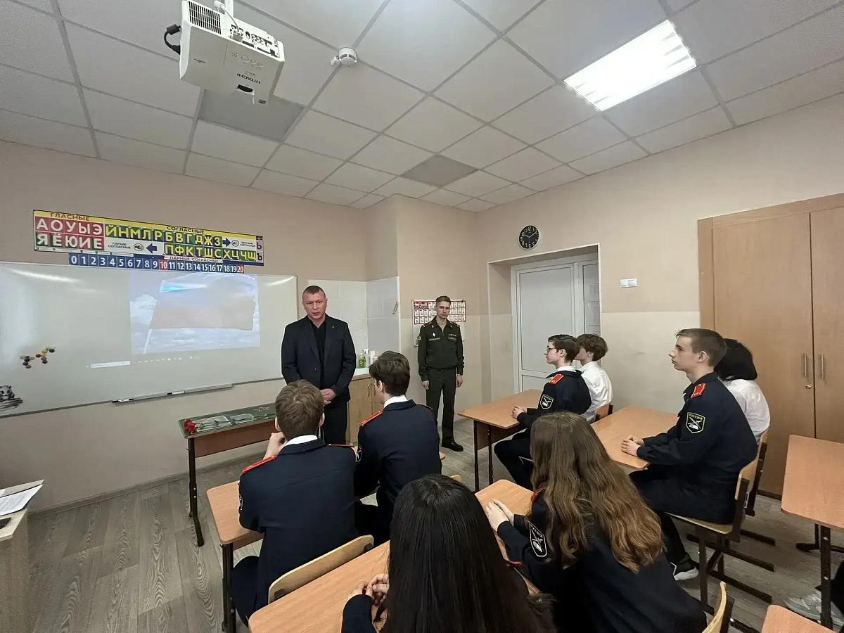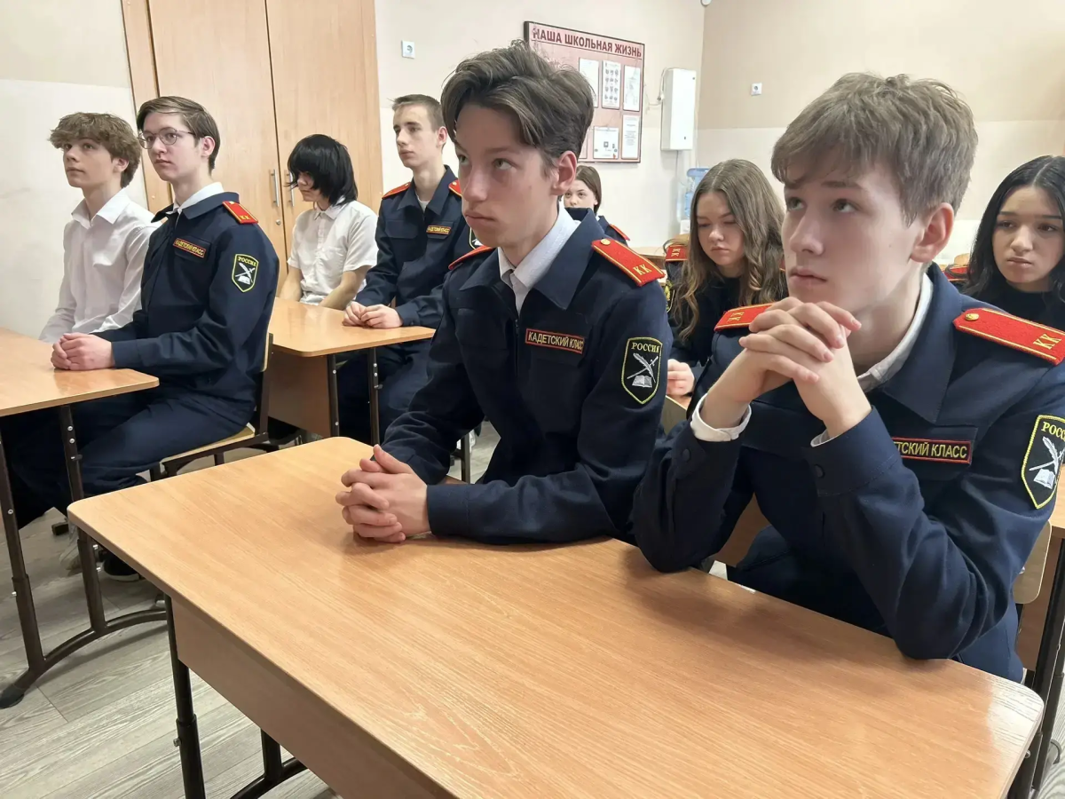 В мероприятии приняли участие кадеты 10-го класса, которые с уважением и трепетом почтили память Никиты Попова и всех, кто отдал жизнь за Родину минутой молчания, а затем возложили цветы к памятной парте.