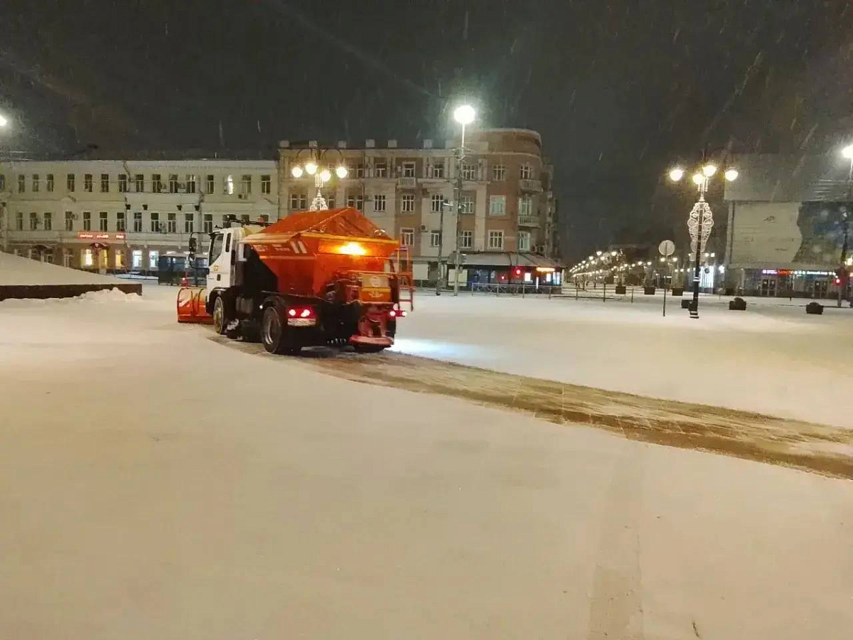 Продолжается расчистка и обработка противогололедными материалами автомагистралей, пешеходных зон и общественных территорий. Особое внимание уделяется подходам к остановочным павильонам и учреждениям соцсферы.