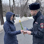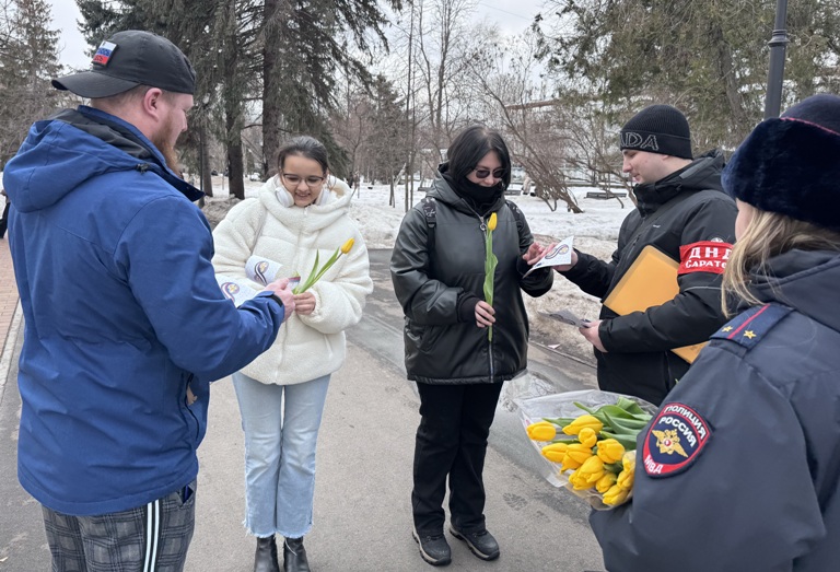 В преддверии Международного женского дня сотрудники полиции Управления МВД России по городу Саратову поздравили представительниц прекрасного пола с наступающим праздником и вручили им цветы. Старший участковый уполномоченный полиции старший лейтенант полиции Юсеф Ахмеров совместно с дружинниками пожелали женщинам здоровья и семейного благополучия. Данное мероприятие прошло на центральных улицах города в рамках Всероссийской акции МВД России «8 Марта – в каждый дом».
