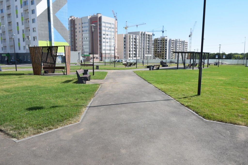 Один из примеров – микрорайон Городские просторы в Ленинском районе. Здесь есть вся необходимая инфраструктура. Кроме жилых домов построены два детских сада, запланировано строительство школы, завершены работы по созданию сквера. Благоустройство общественной территории велось в рамках нацпроекта «Жилье и городская среда». Граждане сами выбрали, какую зону отдыха хотели бы здесь видеть.