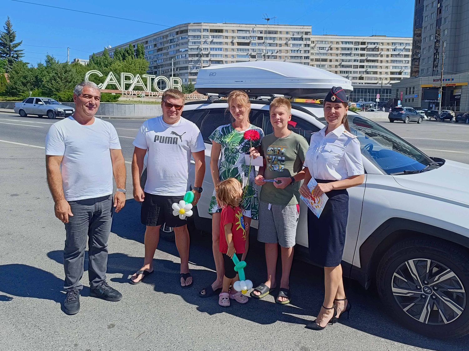 Сотрудники регионального управления Госавтоинспекции и член Общественного совета при ГУ МВД России по Саратовской области Араик Косян поздравили участников дорожного движения с семейным праздником.