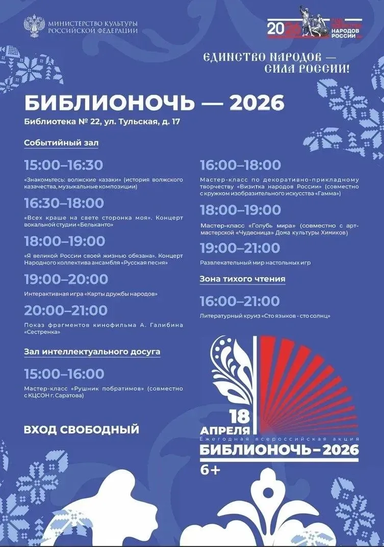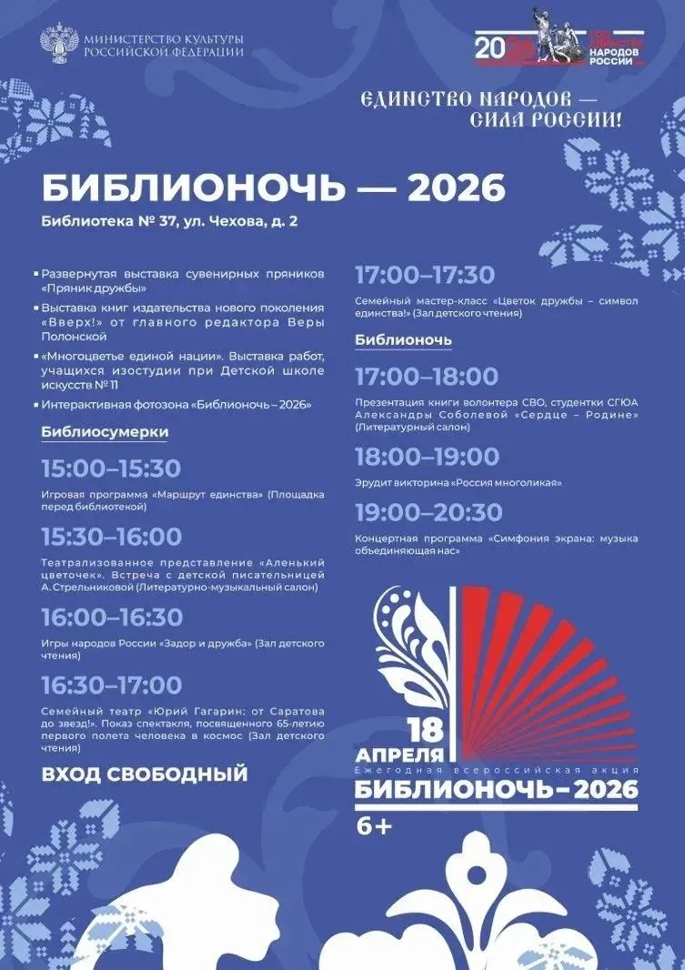 В рамках Всероссийской акции «Библионочь» сегодня для жителей Саратова организована насыщенная программа: литературные викторины, творческие мастер-классы, встречи с писателями и поэтами, а также уютные чтения и музыкальные вечера.