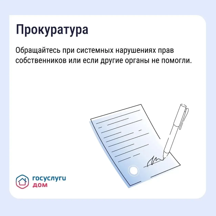 Куда обращаться, если управляющая организация (УО) игнорирует заявки, не предоставляет отчёты или некачественно исполняет обязанности? В карточках — четыре инстанции, которые помогут отстоять права.