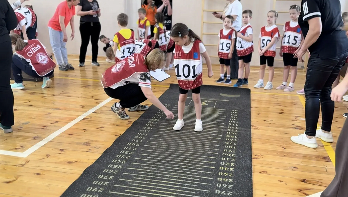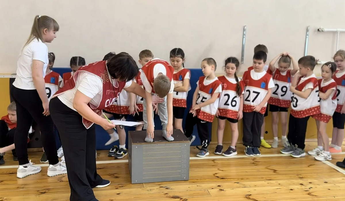 Воспитанники дошкольных учреждений района сдавали нормативы по наклону вперед из положения стоя на гимнастической скамье, прыжкам в длину с места, метанию теннисного мяча в цель и др.
