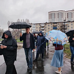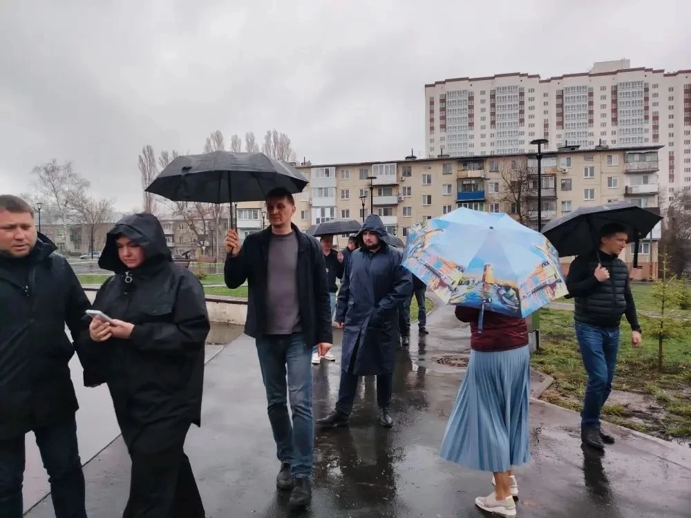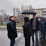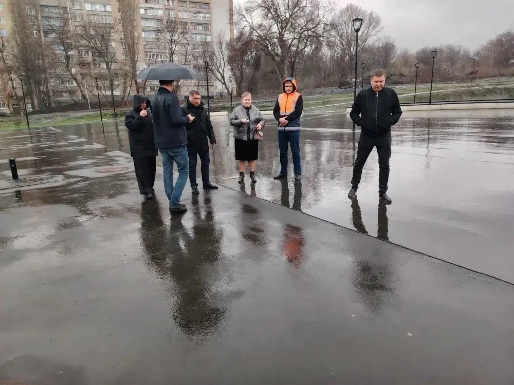 Руководитель коммунальной службы района Егор Лагутин, руководитель МБУ «Садово-парковое» Евгений Савкин, заместитель главы администрации Заводского района по благоустройству Николай Панов, а также представители юридического отдела, специалисты строительного контроля и активисты микрорайона «Пролетарский» провели выездную встречу на территории сквера.