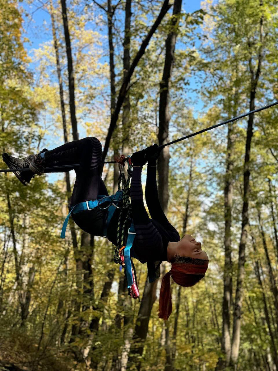 преодолеть крутые подъемы по веревке на жумаре (специальный зажим) или спортивным способом;