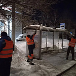 Проводится расчистка и обработка противогололедными материалами автомагистралей, пешеходных зон и общественных территорий. Особое внимание уделяется подходам к остановочным павильонам и учреждениям соцсферы.