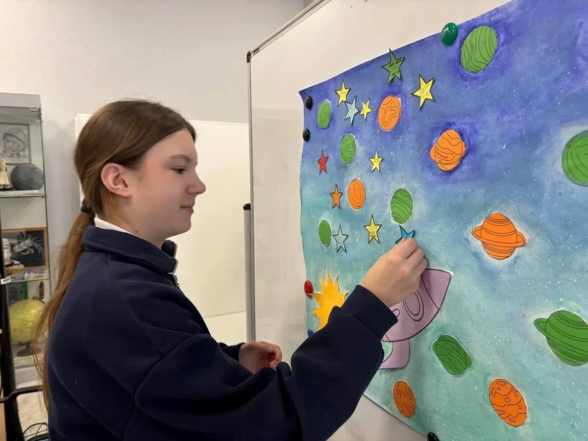 Занятие построили в интерактивном формате: школьники изучили факты биографии первого космонавта, заполняя «Бортовые журналы», отмечая события, которые связывают Юрия Гагарина с регионом. Ученики прочли стихи о космосе и человеческом подвиге, также они оформили общий плакат с тематическим созвездием.