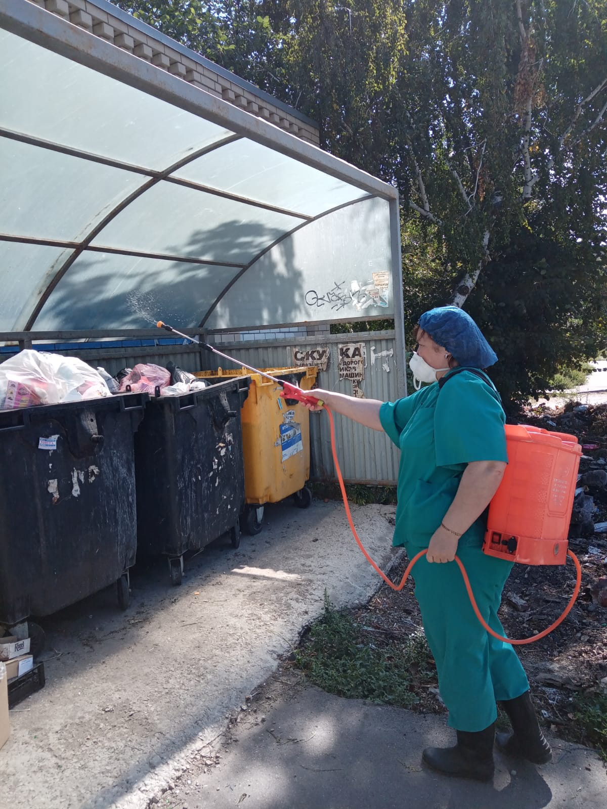 Работы по дезинфекции проведены на 12 контейнерных площадках по адресам: ул. Университетская, 7, ул. Хользунова, 40/42, ул. Рабочая, 197, 172, Белоглинская, 134, Новоузенская, 166/168, Вокзальная, 15 А, Шелковичная, 168, Октябрьское ущелье, д. 5, Зеленая долина, д. 1, Соловьиная, д. 12, 32.